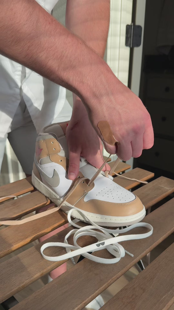 This video demonstrates how to lace Bread's 45" Cloud White Elastic Shoelaces with Air Force 1s. The methodology used works on various shapes and sizes of shoes and laces.